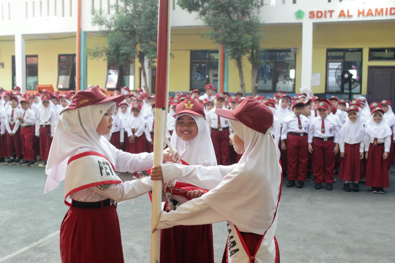 Bojong Gede, 28 Juli 2025 – SDIT AL-HAMIDIYYAH Bojong Gede memulai pekan dengan upacara bendera khidmat. Seluruh siswa dan staf berkumpul, mengibarkan Merah Putih diiringi "Indonesia Raya." Pesan kedisiplinan dan semangat belajar disampaikan, menegaskan penanaman nilai kebangsaan di sekolah ini. Semangat pagi ini diharapkan membimbing siswa menjadi generasi berkarakter.